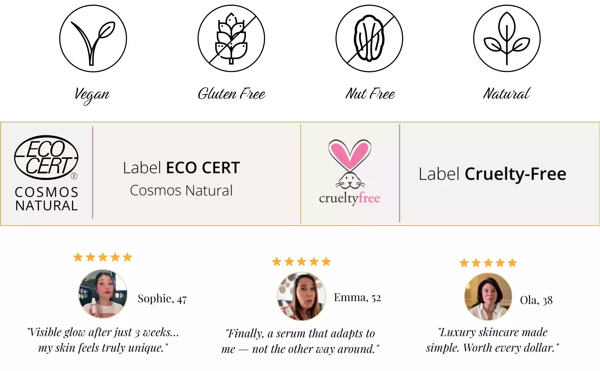 With an optimal dosage of these ingredients, this serum guarantees visible and lasting results — for younger, radiant, and strengthened skin.